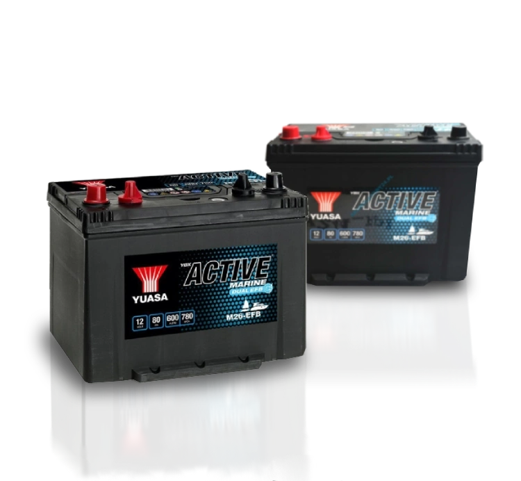 זוג מצברים אטומים 12 וולט תוצרת YUASA,פריקה עמוקה, ללא תחזוקה, בעלי קיבולת של 80 אמפר.